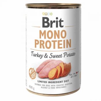 LATA BRIT CARE DOG MONO PROTEIN TURKEY Y SWEET POTATO 400GR PAVO Y PAPA