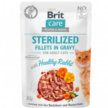 SACHET BRIT CARE CAT STERILIZED FILLETS IN GRAVY WITH HEALTHY RABBIT 85 GR