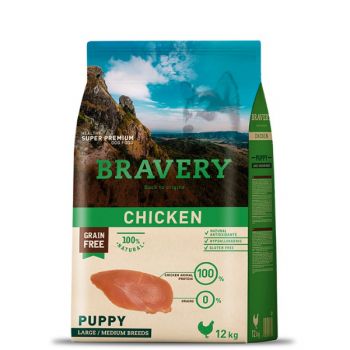 BRAVERY DOG CHICKEN PUPPY LARGE/MEDIUM BREEDS HYPOALERGENIC 12 KG
