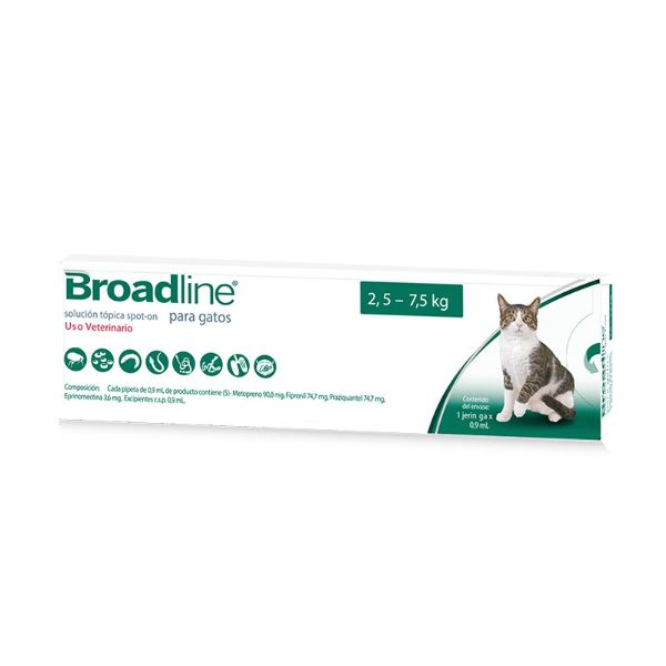 BROADLINE SPOT ON PIPETA GATOS 2.5 A 7.5 KG ANTIPARASITARIO INTERNO Y EXTERNO