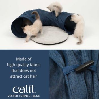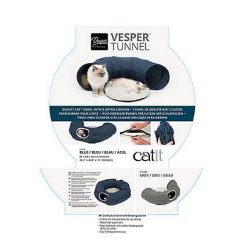 Catit Vesper Tunnel es un accesorio para gatos con forma de túnel que además incluye un cómodo cojín redondo para una siesta después de jugar. Con el Vesper Tunnel de Catit, tu gato tendrá horas de diversión mientras juega y explora por la abertura central o la de los extremos, donde además encontrará una pelota colgada.