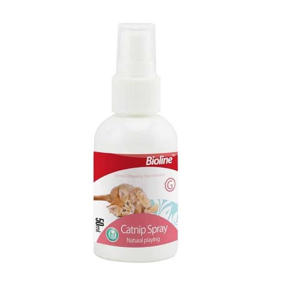 Catnip Spray Bioline 50ml es una  hierba gatera conocida también como catnip, hierba de los gatos, menta de gatos, gatera o nébeda, es una planta originaria de Europa.