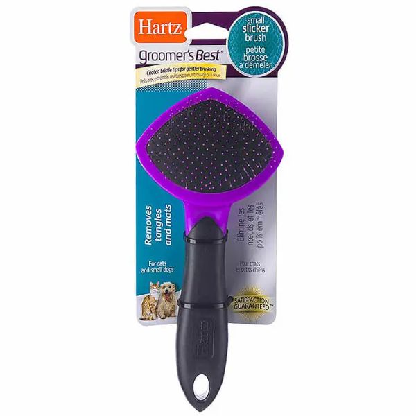Hartz Groomers Cepillo Pequeño, esta desarrollado con peluqueros profesionales para eliminar, desenredar y quitar nudos de mascotas pequeñas.