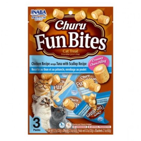 Churu Fun Bites Atun y Ostion  es un snack para gatos, 100% natural en forma de peque�os bocaditos suaves en forma de almohada, con un relleno Creamy Churu en el interior. Elaborado con sabores naturales, extracto de t� verde, taurina y vitamina E.