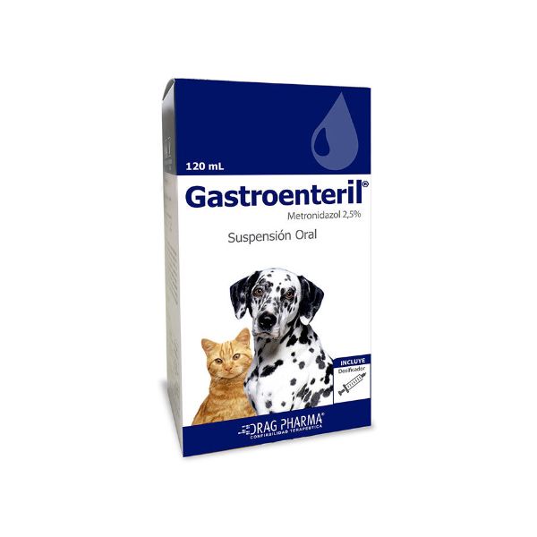 Gastroenteril® suspensión oral, está indicado para el tratamiento de diarreas asociadas a giardias, en perros y gatos. También está indicado en infecciones entéricas y sistémicas causadas por bacterias anaerobias obligadas sensibles al Metronidazol.