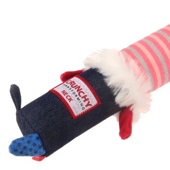Juguete para perros diseñado con un cuello que cruje y se transforma.