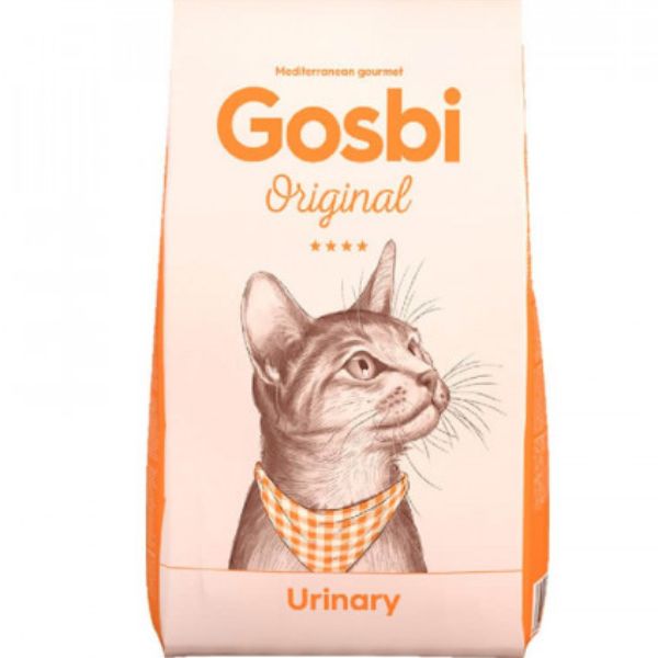 GOSBI CAT ORIGINAL URINARY Alimento completo para gatos adultos con problemas del tracto urinario. Composición: proteína de pollo deshidratada (28%), arroz (min. 19%), salmón, atún, maíz, grasa de pollo, aceite de pescado, levadura de cerveza, aceite de salmón, pulpa de remolacha, fibra de arroz, hidrolizado de crustáceos (fuente de glucosamina), extracto de yuca, algas marinas, romero.