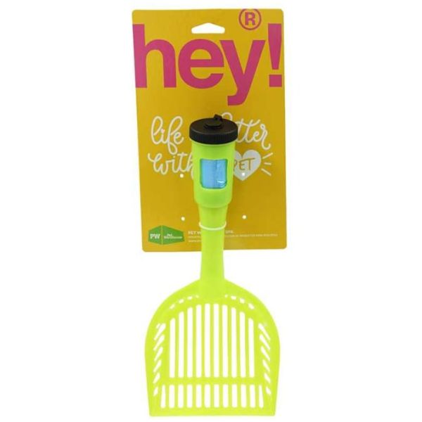 Limpie los desechos de su amigo peludo de forma mas eficiente con la pala de lujo para gatos de hey! con asa para bolsas de basura. Esta pala 2 en 1 tiene un diseño de cubo grande para facilitar el cribado y viene con bolsas de basura para eliminar los excrementos del gatito. Las bolsas encajan en el mango de la pala para mayor comodidad y se recargan por la parte superior. Haga que la limpieza de su caja de arena sea una tarea mas rápida con la pala de lujo para gatos hey! con asa para bolsas de basura.