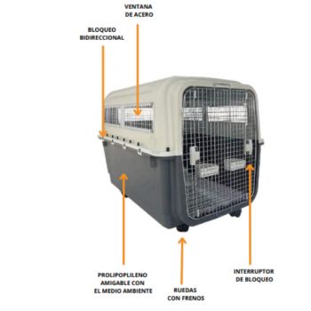 Aprobada para transporte aereo, Cumple con todas las especificaciones exigidas por las aerolineas para viajar tranquilamente con su mascota. La jaula tiene un sistema de doble cierre lo que garantiza la seguridad de su companero. Otras Caracteristicas: Ventilacion en todo sus costados. Ensamble con tornillos metalicos. Puerta rejilla metalica con doble seguro. Plastico de alta resistencia.