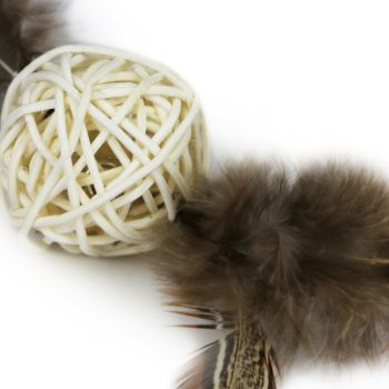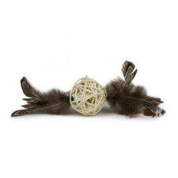JUGUETE HEY BOLA RATAN NATURAL CON PLUMAS Y CAMPANA INTERIOR 3,8 CM