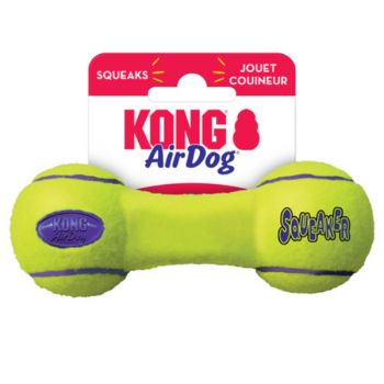 KONG AirDog® Squeaker Dumbbell combines two classic dog toys -the tennis ball and the squeaker - to create the perfect fetch toy. The non-abrasive, high-quality material will not wear down dogs’ teeth. Find your dog’s favorite AirDog® shape and let the games begin.