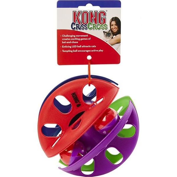 El Juguete KONG CrissCross es una pelota emocionante y divertida que ayuda a promover el ejercicio, especialmente en gatos que viven al interior de sus casas. La atractiva pelota LED y el sonido del cascabel animan a los gatos a golpear y perseguir el juguete que se mueve y gira en un juego duradero. El CrissCross se mueve y rueda mientras tu gato juega, creando movimientos desafiantesque lo mantienen estimulado y activo mental y físicamente.