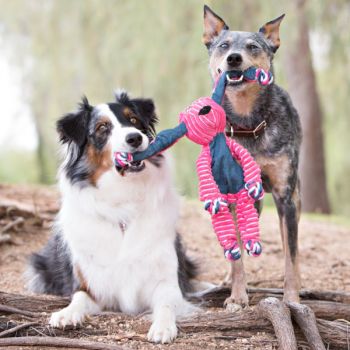 KONG Floppy Knots son la incorporación más reciente a la tribu Knots con un alegre y tierno diseño que permite una gran diversión con las sacudidas. Las sensación real de la cuerda anudada del interior satisface los instintos naturales, mientras que las variadas texturas y los chirriadores preparan para el juego. Sin relleno para menos líos, prepárese para los juegos de entretenimiento y las risas.