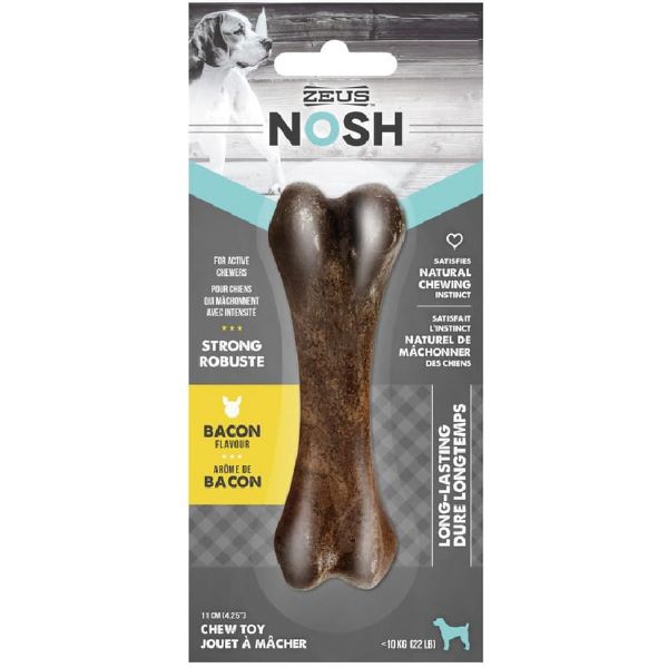 Zeus Nosh Strong es un hueso duro para perros adultos con sabor a tocino. Cuando son adultos, los perros roen de manera natural porque les ayuda a mantener los dientes limpios y a fortalecer la mandíbula.