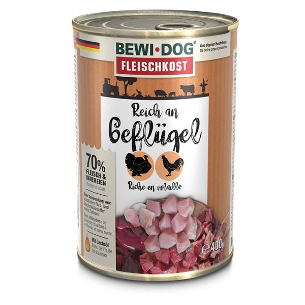 - El alimento para animales puede ser combinado con BEWI DOG comida seca.