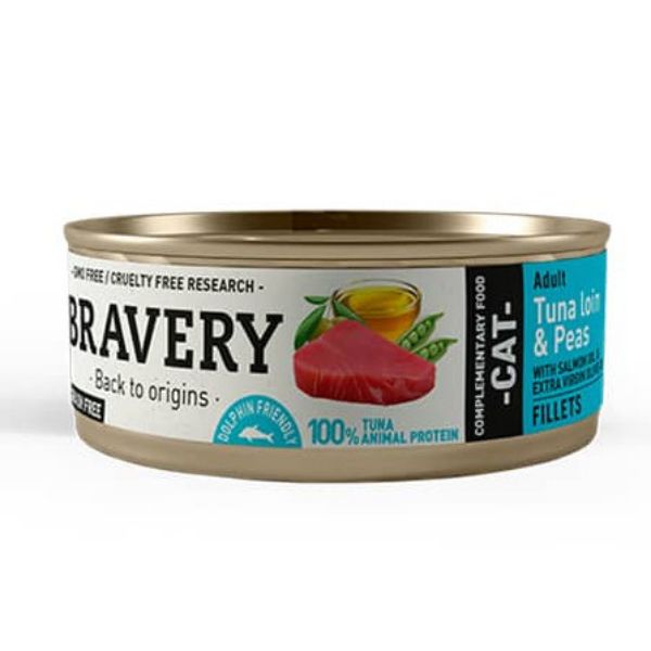 LATA BRAVERY CAT TUNA LOINS WITH PEAS 70G LOMO DE ATUN CON GUISANTES