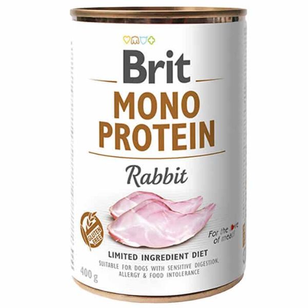Lata Brit Mono Protein Rabbit es un alimento húmedo indicado para todos los perros.