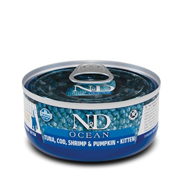 LATA NATURAL Y DELICIOS CAT OCEAN ATUN BACALAO CALABAZA CAMARON KITTEN 80GR