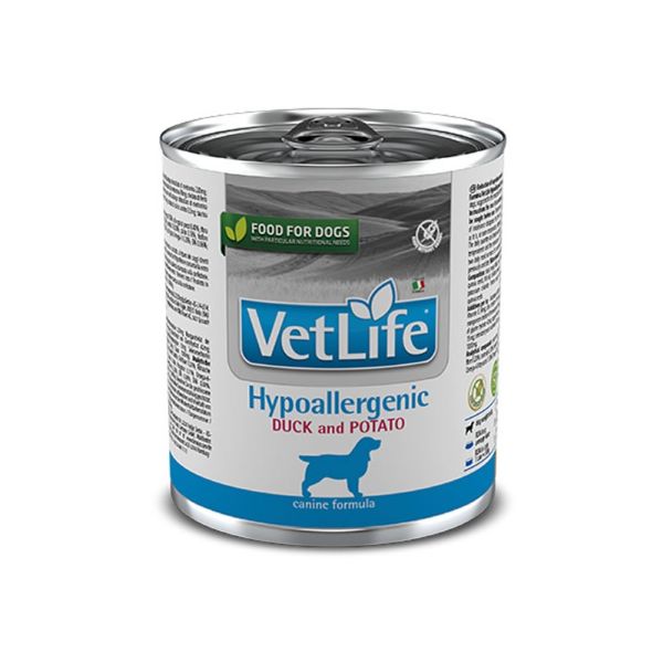 Farmina Vet Life Hypoallergenic Duck & Potato es un alimento diet�tico completo formulado para la reducci�n de la intolerancia alimentaria en perros. Tambi�n se recomienda como coadyuvante en el soporte de la funci�n tr�fica de la piel y de sus ap�ndices: ojos, o��dos, sacos anales.