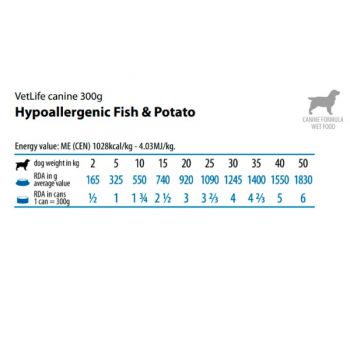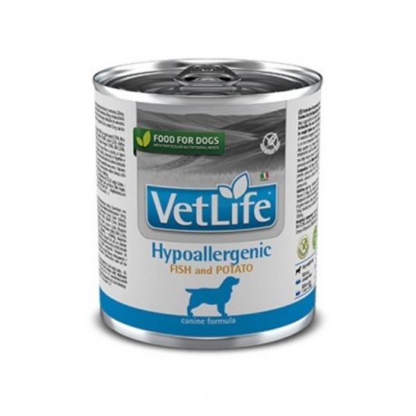 Farmina� Vet Life� Hypoallergenic Pescado & Papa para perros, est� indicado para la reducci�n de intolerancias a ingredientes y nutrientes. Esta receta es elaborada con la m�s selecta fuente de prote�na de alta calidad, �cidos grasos esenciales y fuentes de hidratos de carbono como el almid�n que lo convierte en un excelente alimento ya que es altamente digerible favoreciendo un correcto funcionamiento del h�gado de tu mascota. Tambi�n contiene tocoferoles de origen natural que protegen las c�lulas de los radicales libres y mejoran el estado de su sistema inmune.