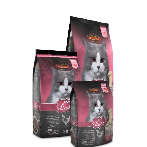 LEONARDO®AdultLight es un alimento indicado para gatos adultos con sobrepeso o tendencia al mismo. Formulado con bajo contenido energético y alto contenido en proteínas. Con carne de ave extra fresca. Una receta que sacia sin sobrecargar el metabolismo. Apto también para gatos esterilizados. LEONARDO® Adult Light, favorece en gran medida la salud del gato y le ayuda a recuperar la forma física.
