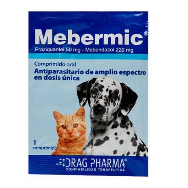 Mebermic Comprimido Oral, tratamiento de todas las parasitosis internas (Nematodos y Cestodos) de perros y gatos. Los parásitos internos afectan al sistema digestivo de los gatos, causando graves problemas si no se actúa. Los gusanos planos como la tenia y los gusanos redondos, suelen ser los más frecuentes en gatos y pueden desencadenar carencias severas. Además un gato con parásitos internos puede contagiar a otros y a si mismo a través de las heces.