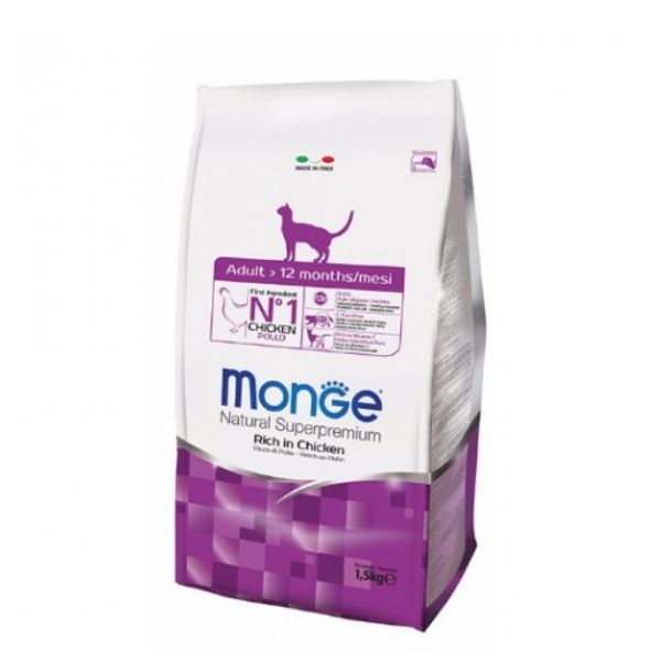 Monge Adult Cat Rich in Chicken es un alimento especialmente formulado para para gatos mayores del año de edad y de estilo de vida outdoor o con acceso al exterior. Con pollo fresco y deshidratado como primer ingrediente proteico y con la incorporación de L- Carnitina ayuda a mantener su condición corporal ideal con una masa muscular y metabolismo saludable. Alto en vitamina C, que ayuda a mantener una flora intestinal sana.