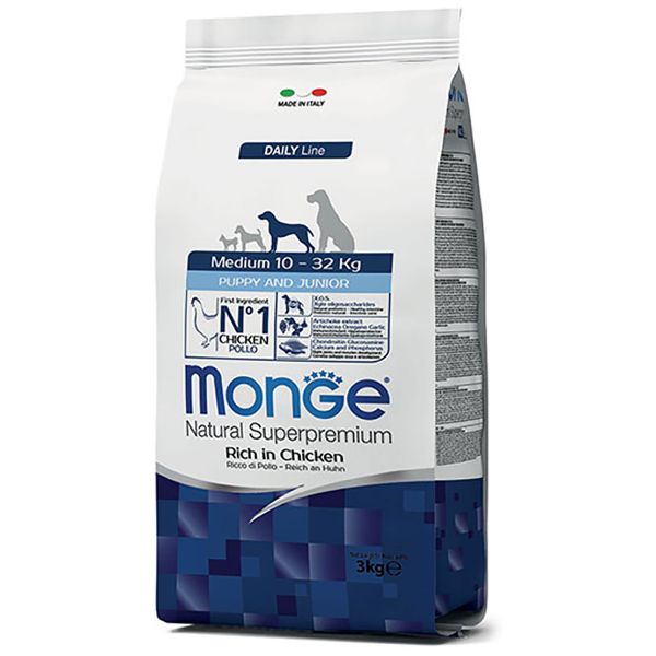 MONGE DOG MEDIUM PUPPY & JUNIOR CHICKEN 12 KGS