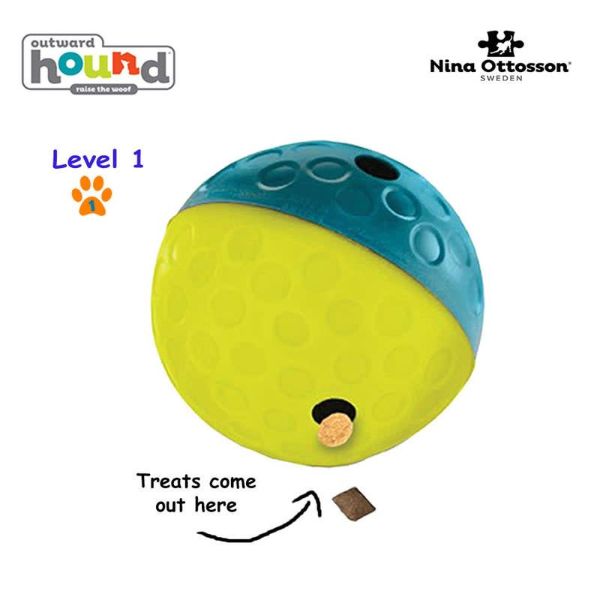 Simplemente llena esta bola de alimentación con las golosinas y / o croquetas favoritas de tu perro y observalo jugar con el rompecabezas hasta que descubra cómo soltar las golosinas.