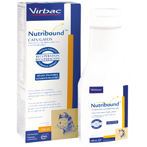 Nutribound es una fórmula líquida altamente palatable y lista para su uso que favorece al animal, la ingesta de agua y comida. Proporciona los nutrientes esenciales especialmente recomendados como soporte al animal en los estadíos más tempranos en condiciones de recuperación. Sin agentes conservantes ni colorantes artificiales. Para todas las etapas de la vida. Nutribound no corresponde a un alimento completo.