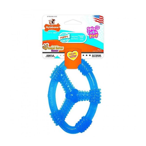 Dale a tu cachorro algo divertido para masticar con el juguete para perros Nylabone Puppy Chew Ring con sabor a mantequilla de maní.