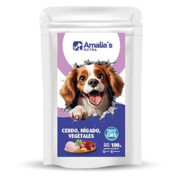 POUCH AMALIA´S DOG CERDO HIGADO Y VEGETAL 100G