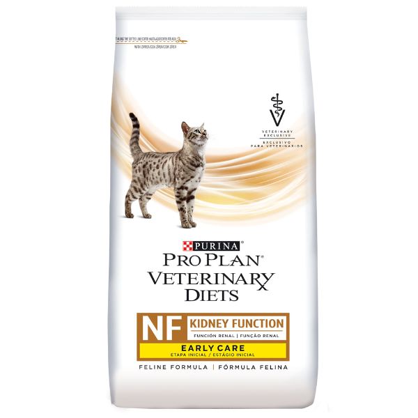 Pro Plan Veterinary Diets NF Kidney Function es un alimento indicado para el tratamiento de la enfermedad renal en gatos de todas las razas en etapas iniciales que no requieren de una restricción proteica en su dieta. Contra-indicación: Este alimento está contraindicado para gatos en crecimiento, hembras gestantes o lactantes.
