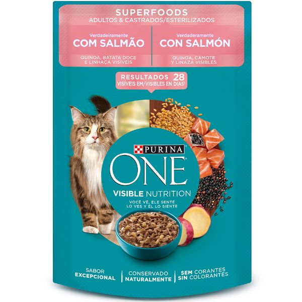 Purina One® superfoods salmón gatos adultos y esterilizados 85 grs