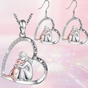 Collar con Colgante de Corazón y Aretes para Regalo de Navidad Cumpleaños, para Amantes de los Perros