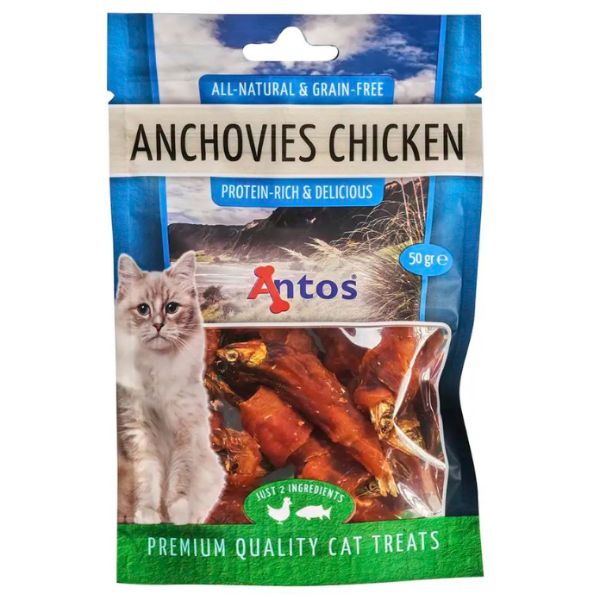 SNACK ANTOS CAT ANCHOAS Y POLLO 50 GRS