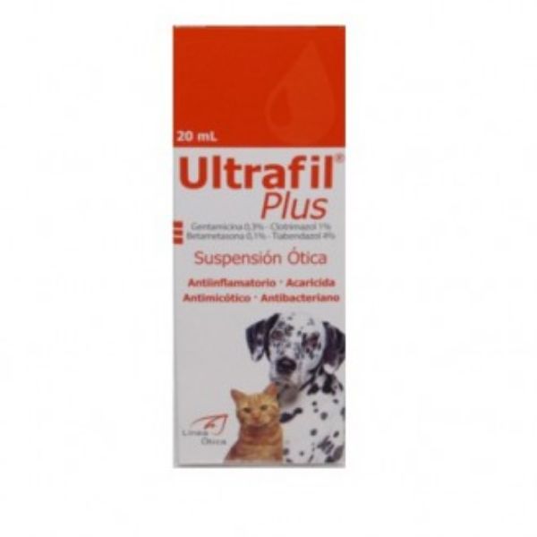 ULTRAFIL PLUS, suspensión ótica, esta indicado en el tratamiento de otitis externas generadas por bacterias, hongos y/o ácaros sensibles a la asociación. Su uso está especialmente indicado en infecciones óticas generadas por bacterias tales como, Staphylococcus spp., Streptococcus spp., Pseudomona aeruginosa, Proteus spp. y Escherichiacoli; hongos tales como, Malassezia pachydermatis, Candida spp. y Microsporum canis, y/o ácaros de la especie Otodectes cynotis.