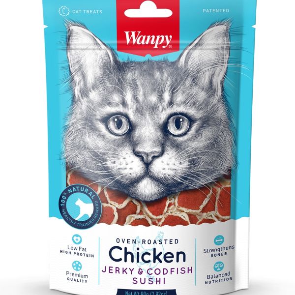 WANPY CHICKEN JERKY & CODFISH SUSHI CAT 80G