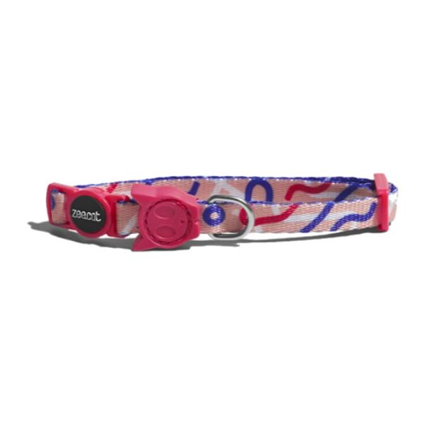 Zee.Cat Pinna Cat Collar está fabricado en poliéster suave de alegre estampado. Completamente ajustable, dispone de hebilla de apertura automática para evitar ahogos y cuenta con argolla metálica en forma de D para enganchar la correa. Una misma talla sirve para todos los gatos y tamaños. Medidas: 1 cm de anchura x 20-30 cm de longitud.