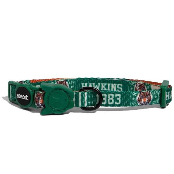 Zee.Dog Hawkins Stranger Things Dog Collar es un collar para perros fabricado en poliéster de gran calidad con diseño alegre y colores vivos que no pierden su intensidad ni con el agua ni con el viento. Cierre resistente de clic con sistema de 4 puntos, fácil de poner y quitar. Totalmente ajustable. Suave y Cómodo. Con argolla en forma de "D" de aleación de zinc. Lavable con detergente neutro. Producto exclusivo de la asociación Stranger Things x Zee.Dog