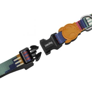 Zee.Dog Maze Collar es un collar para perros fabricado en poliéster de gran calidad con diseño alegre y colores vivos que no pierden su intensidad ni con el agua ni con el viento. Cierre resistente de clic con sistema de 4 puntos, fácil de poner y quitar. Totalmente ajustable. Suave y Cómodo. Con argolla en forma de "D" de aleación de zinc. Lavable con detergente neutro.