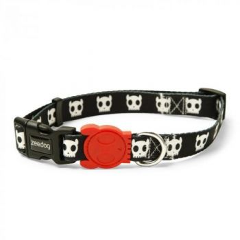 Zee.Dog Skull Dog Collar es un collar para perros fabricado en poliéster de gran calidad con diseño alegre y colores vivos que no pierden su intensidad ni con el agua ni con el viento. Cierre resistente de clic con sistema de 4 puntos, fácil de poner y quitar. Totalmente ajustable. Suave y Cómodo. Con argolla en forma de "D" de aleación de zinc. Lavable con detergente neutro.